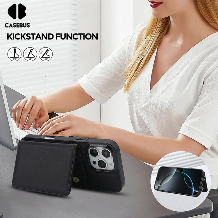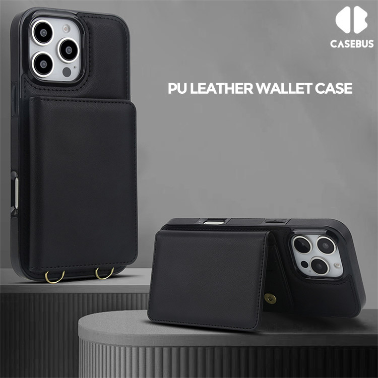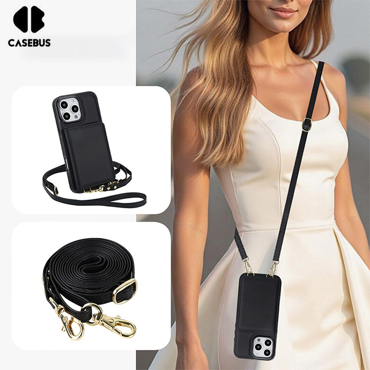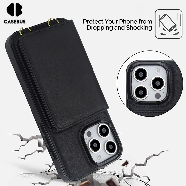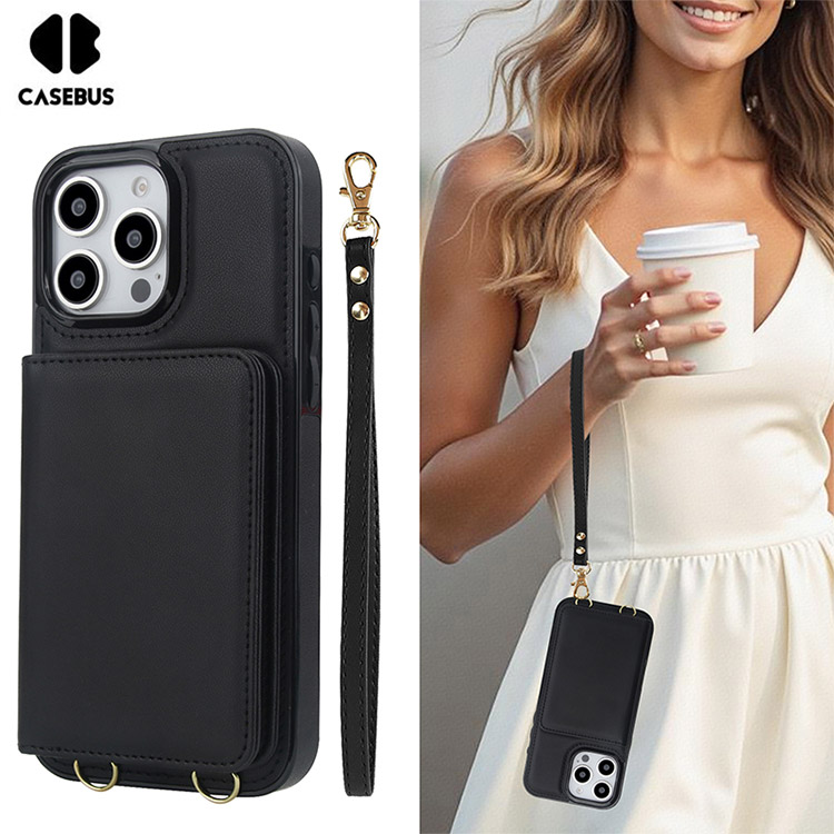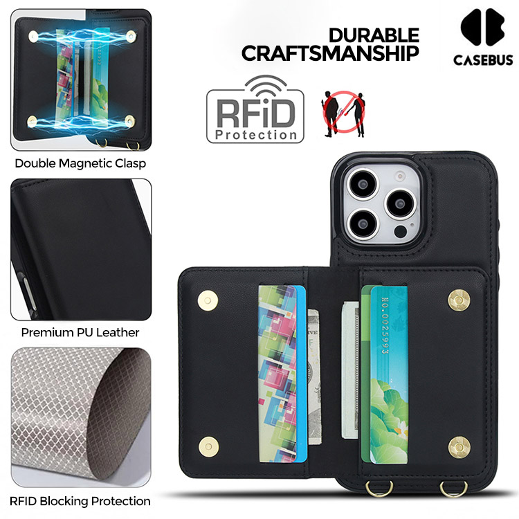 Casebus Crossbody Wallet Phone Case, With Detachable Strap Lanyard Magnetic Closure Credit Card Holder Leather Kickstand Shockproof Cover