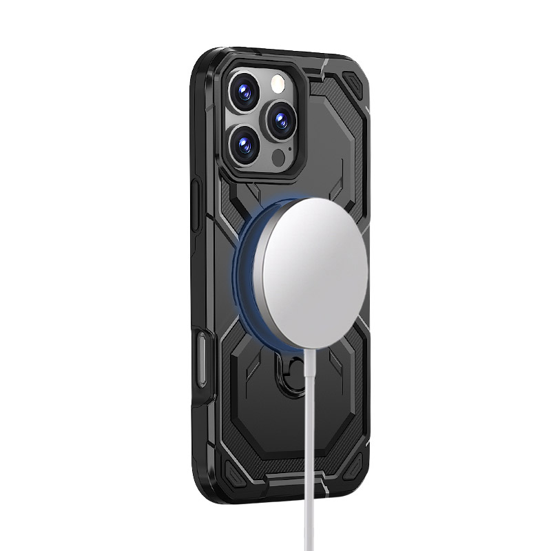 EDGAR Casebus Heavy Duty Magnetic Phone Case, Support Magsafe, with 360° Rotating Ring Kickstand, Military Grade Shockproof Protective Cover