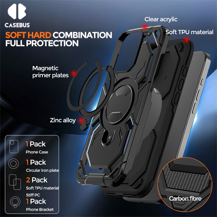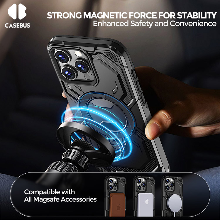 Casebus Heavy Duty Phone Case, Support Car Magnetic, with Camera Lens Protection, Military Grade Shockproof Cover