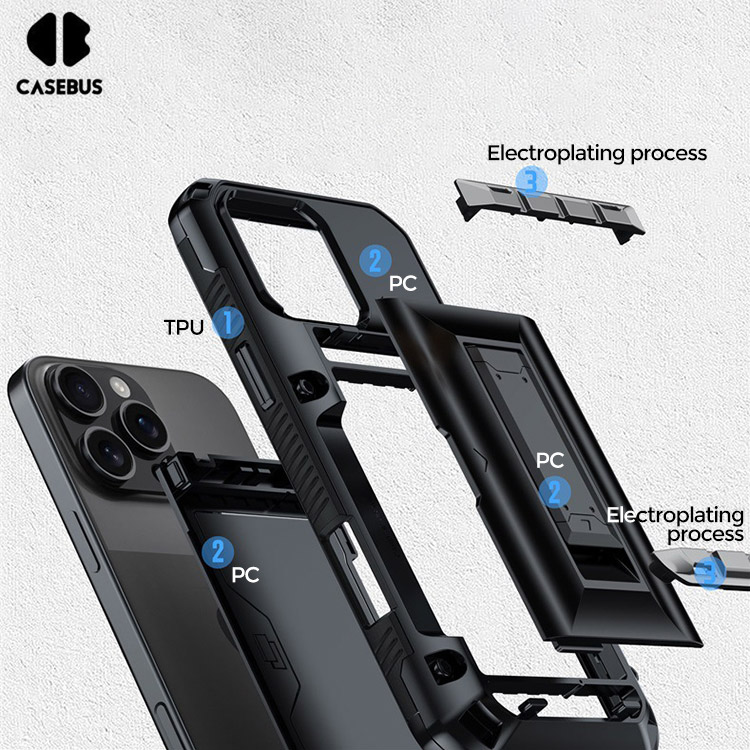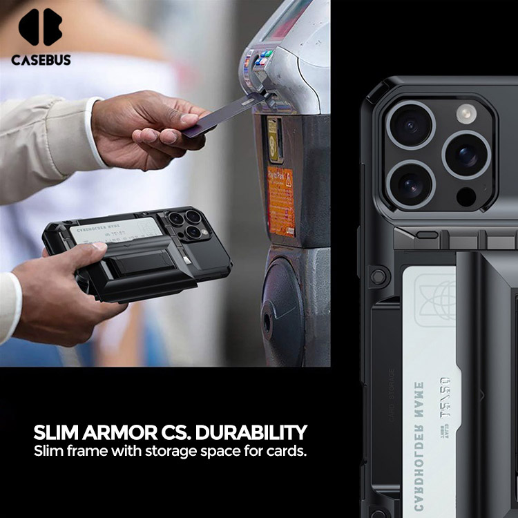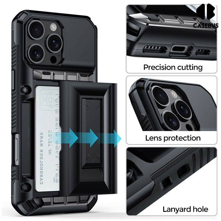 Casebus Classic Phone Case, with Credit Card Holder, Sliding Slot Heavy Duty Protection Dual Layer Armor Shell Cover