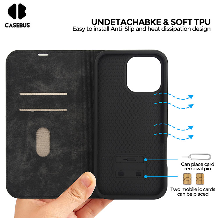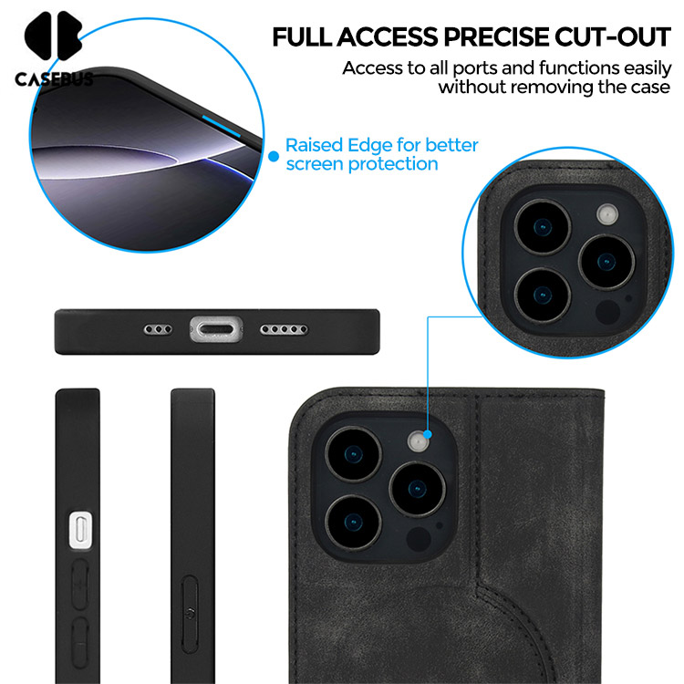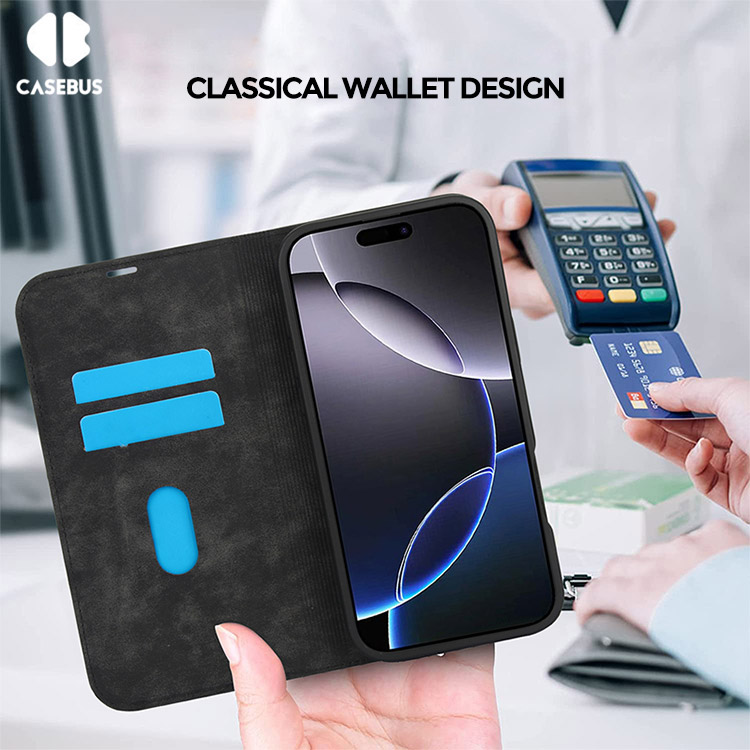 Casebus Classic Wallet Phone Case, 9 Card Slots, Premium Leather, Credit Card Holder, Shockproof Case