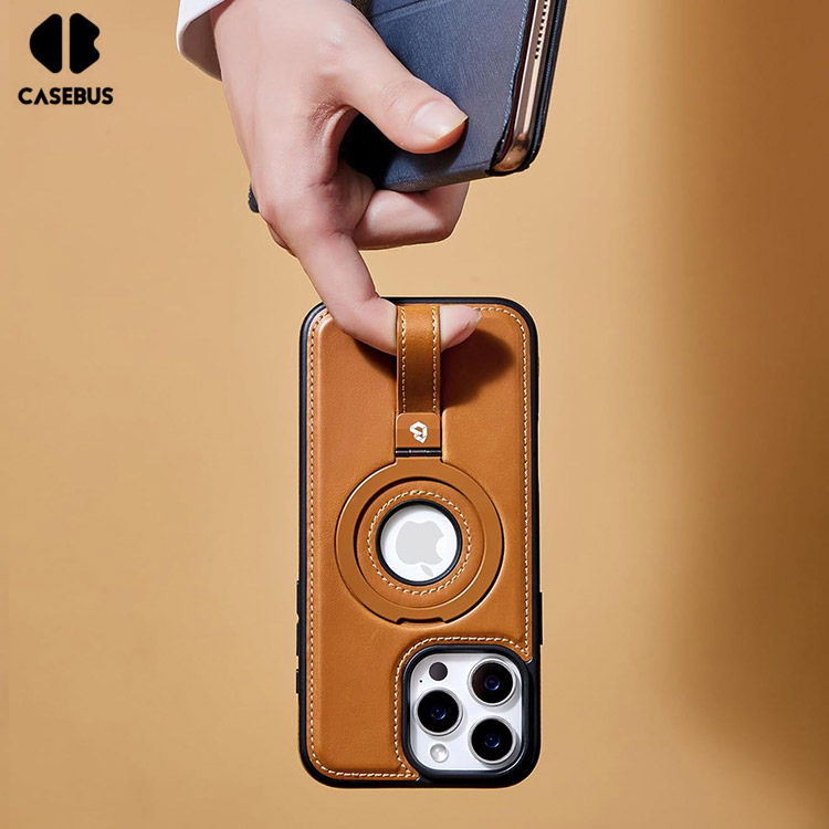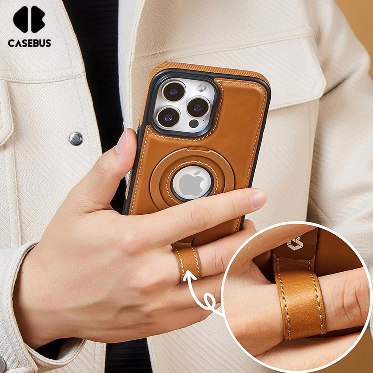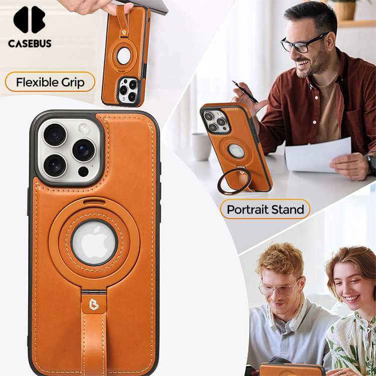 DAKOTA Casebus Magnetic Leather Phone Case, Support Magsafe, with Invisible Ring Kickstand, Shockproof Protective Cover