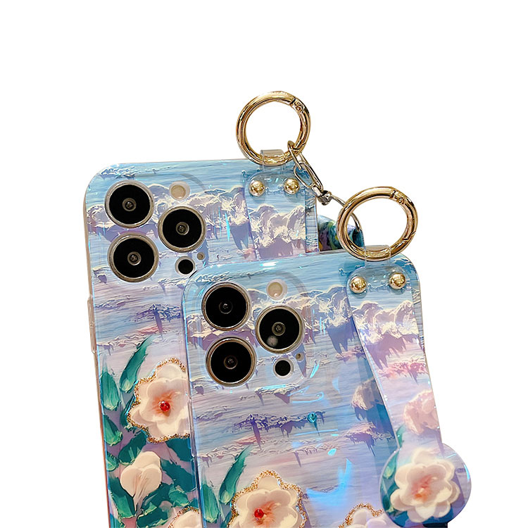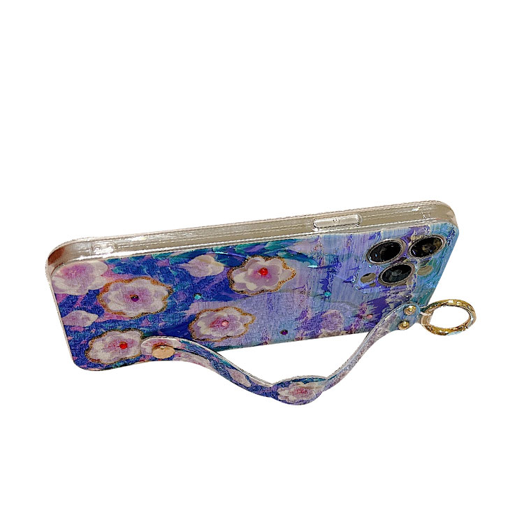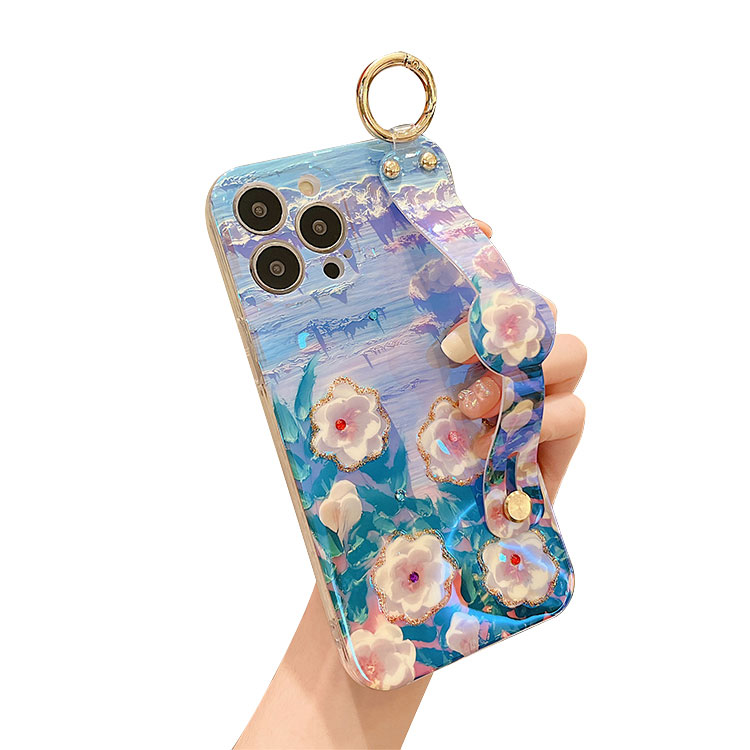 ARIELLE Casebus Fashion Flower Phone Case, Rhinestone Oil Painting Floral Design, with Crossbody Lanyard & Wrist Strap
