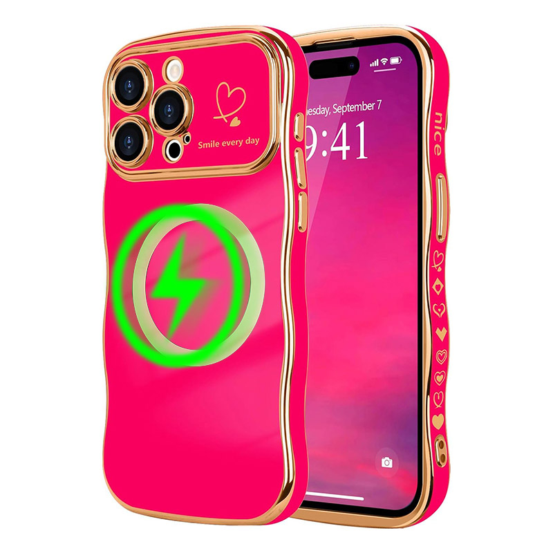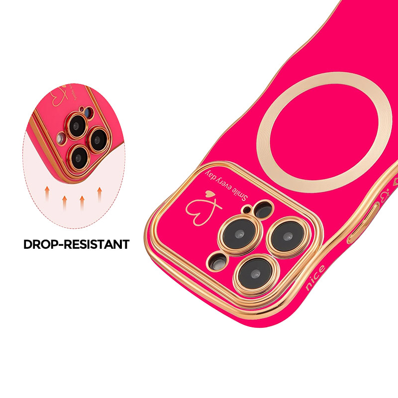 [Diseño único con marco ondulado] La combinación perfecta entre protección y diseño con patrón ondulado, con un diseño de chapado de color resistente en los bordes y la parte posterior de la funda, con un delicado y bonito patrón de corazones en los laterales y la parte posterior, hace que el entorno sea más atractivo en días especiales, ¡un regalo perfecto para mujeres, niñas y amigos!
