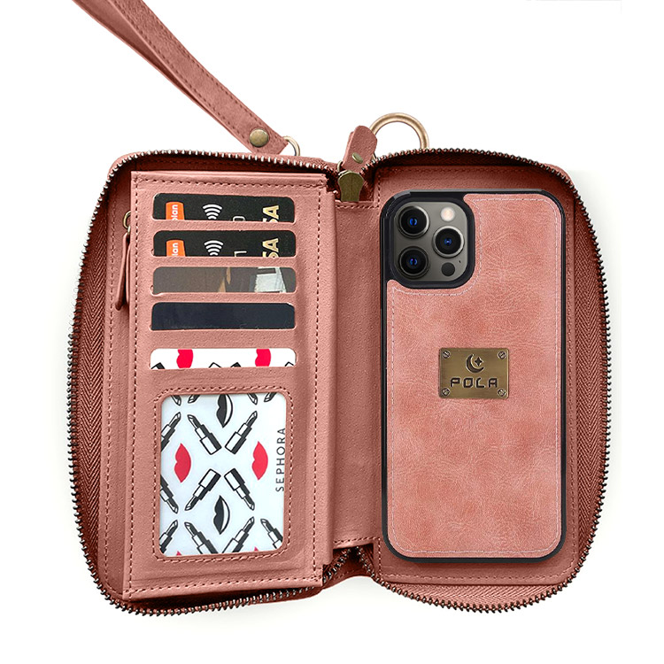 Casebus Crossbody Detachable Phone Wallet Case, Zipper Purse & Card Slots, Wrist Strap Leather Shoulder Bag, Magnetic Back Cover