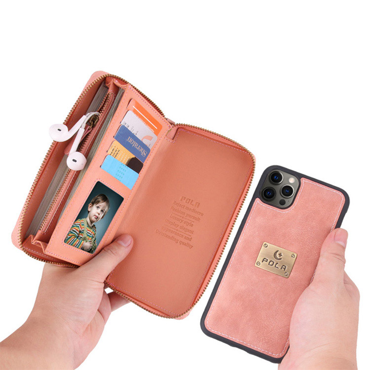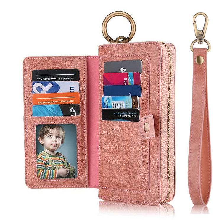 2 in 1 wallet style design leather case with 14 Card Slots,3 purse,1 Zipper Wallet, 1 wrist band,1 metal buckle,to keep your ID card, credit cards, coins ,cash and other things.