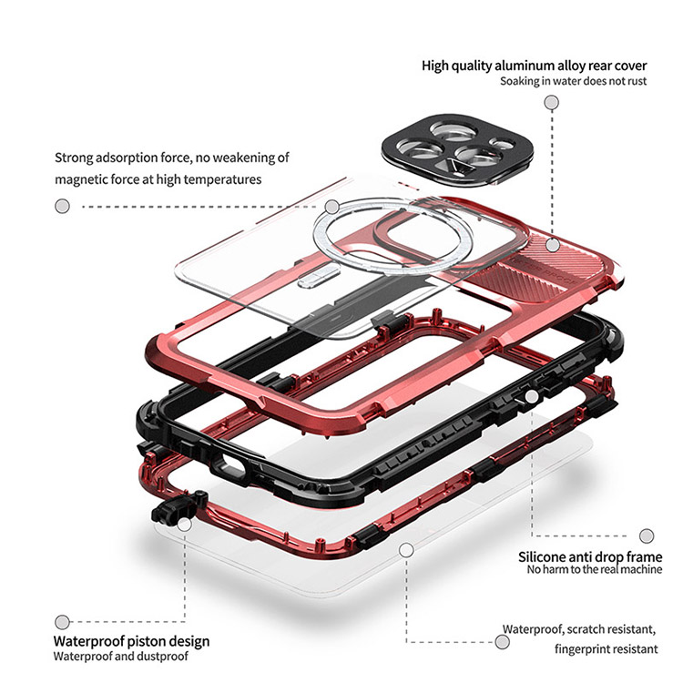 [Rugged Metal Frame] The outer frame made of durable aluminum alloy enhances the protection of the whole body. All four corners have integrated silicone pads for a comfortable grip and reduced impact. The unique buckle design is easy to install.