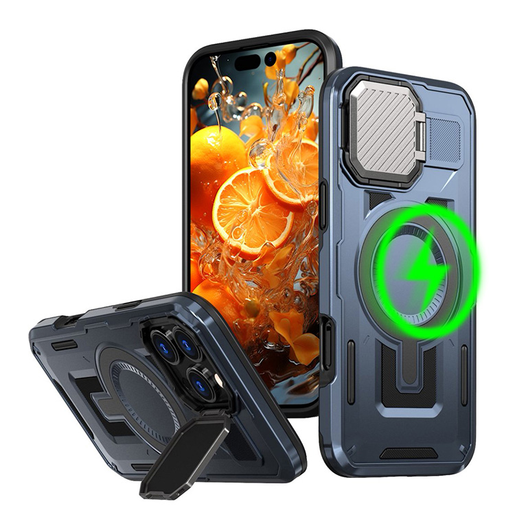 HOLLIS Casebus Heavy Duty Phone Case, Support Magsafe, with Built in Metal Lens Cover Stand, Military Grade Shockproof Protective Cover
