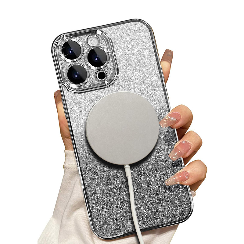 [Diseño moderno y con tiras magnéticas] El lujoso borde electrochapado, con diamantes de imitación en la parte posterior, hace que su teléfono móvil sea especial, encantador, moderno y atractivo, y el anillo magnético incorporado puede reforzar la conexión magnética para que sea compatible con la carga inalámbrica de alta velocidad.