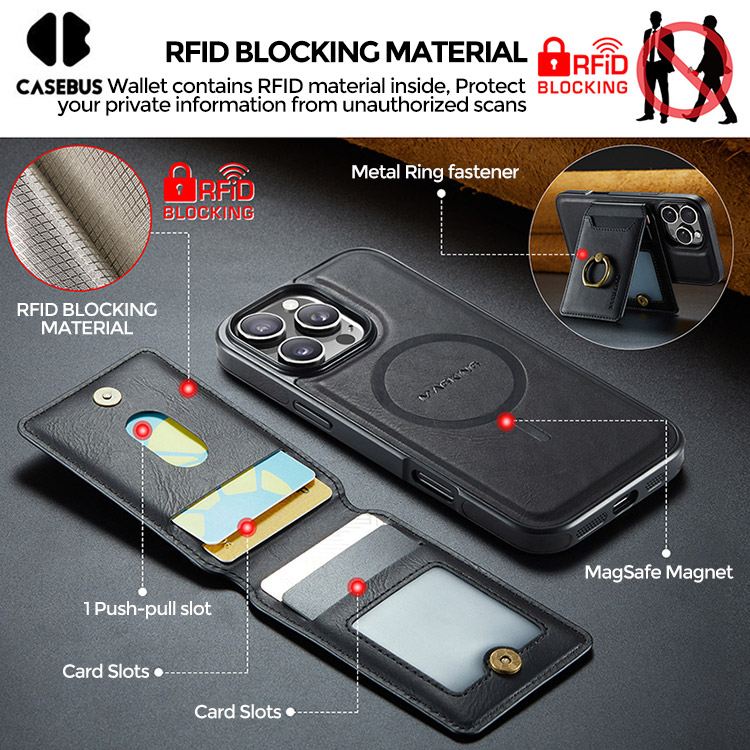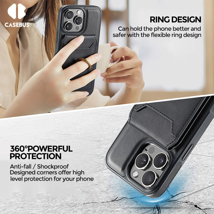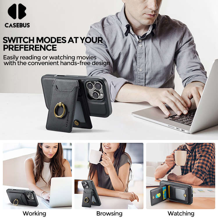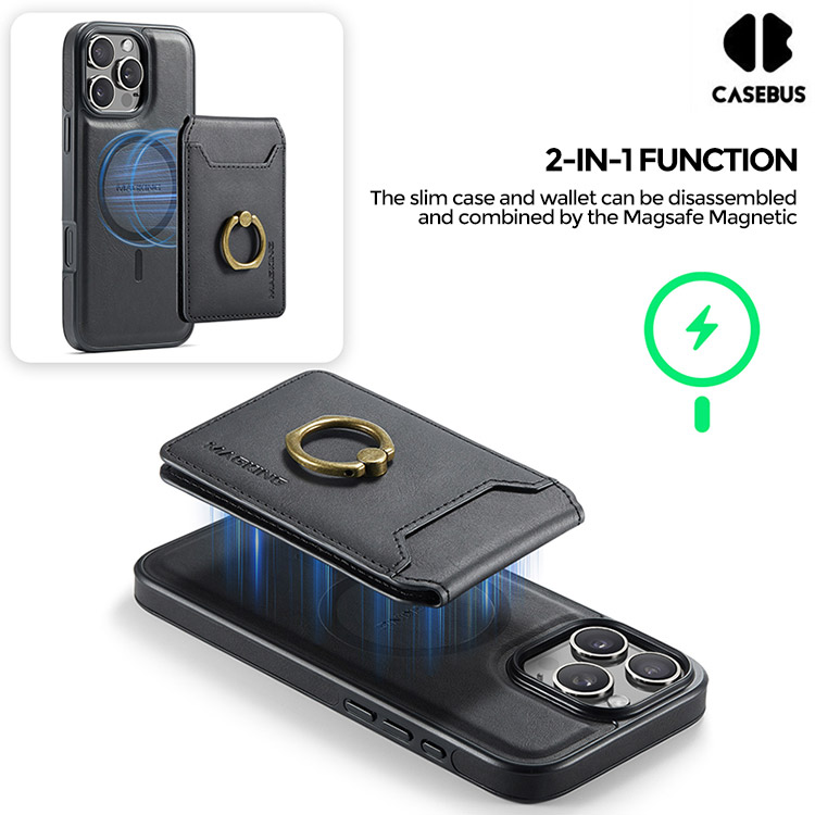 HARLOW Casebus Detachable Magnetic Wallet Phone Case, Support Magsafe, with Card Slot & 360° Rotating Ring Kickstand