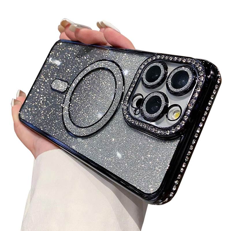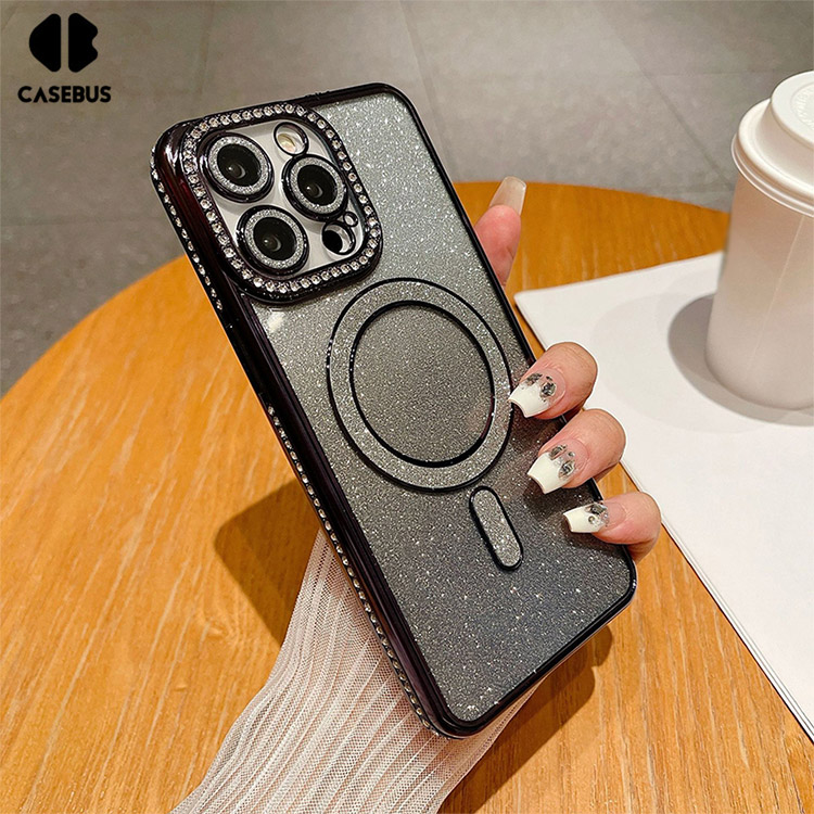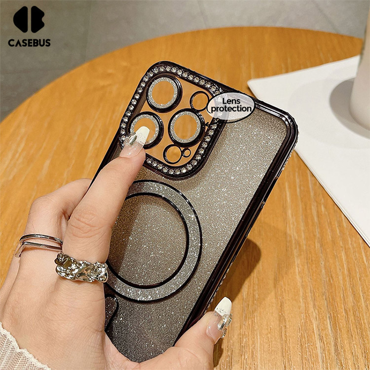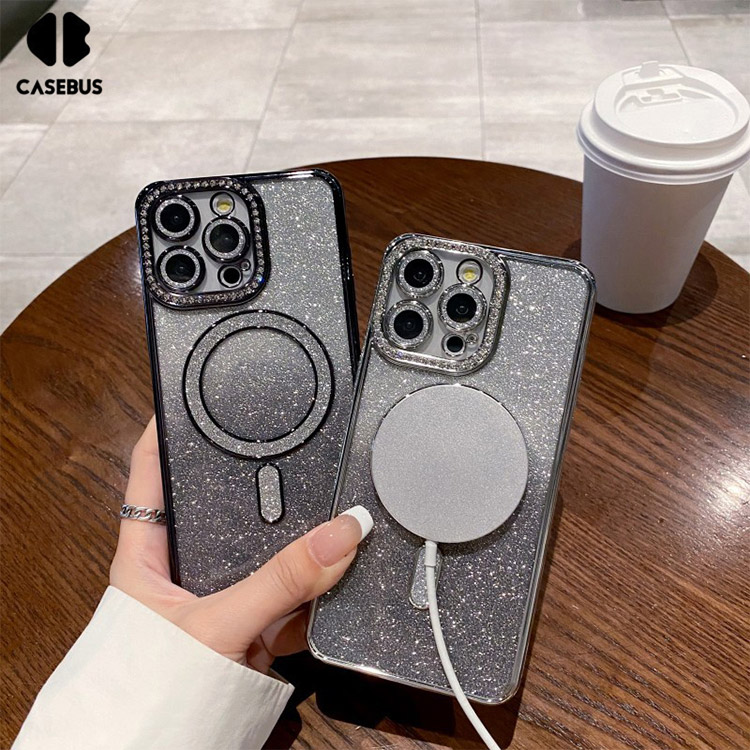 CECILIA Casebus Magnetic Glitter Phone Case, Support Magsafe, Shockproof Protective Cover, with Camera Lens Protector