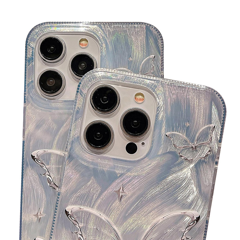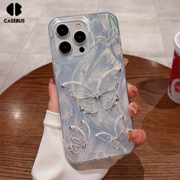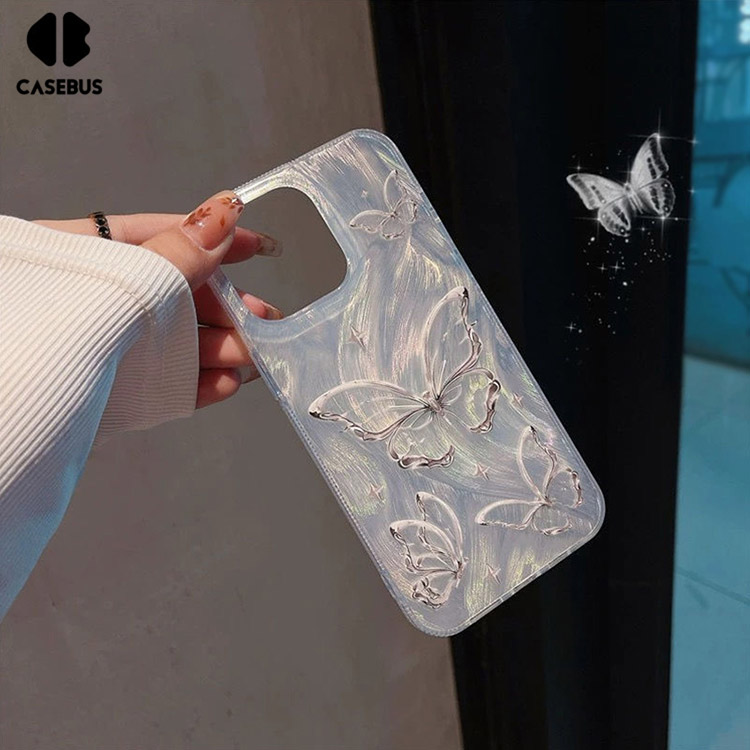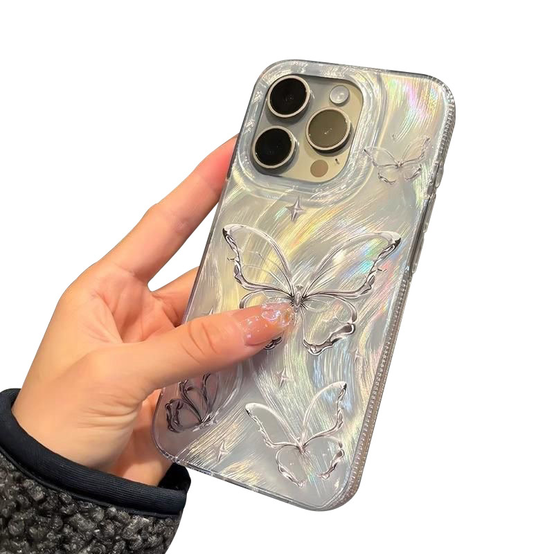 DENISE Casebus Heavy Duty Phone Case, Shiny Silver Butterfly Design, Trendy Slim, Shockproof Protective Cover