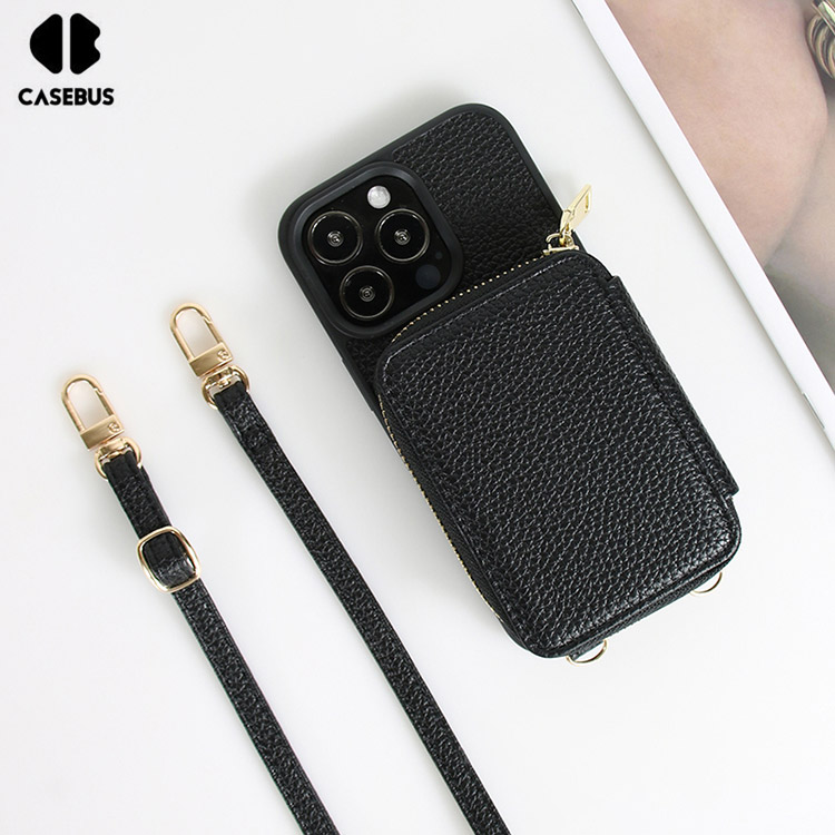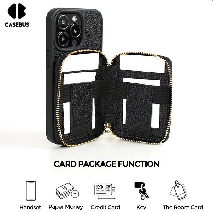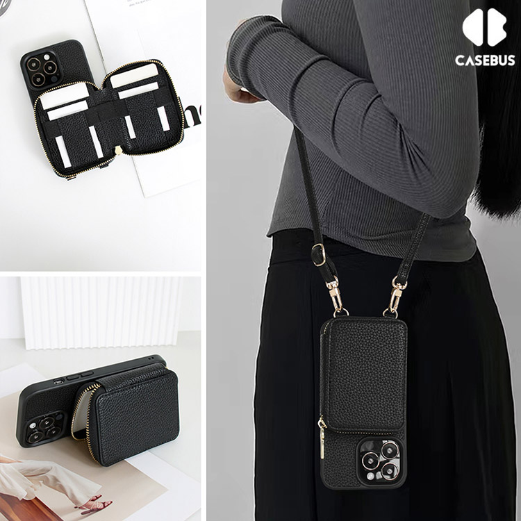 Casebus Classic Crossbody Wallet Phone Case, Premium Leather, Credit Card Holder, Zipper Pocket Purse Handbag, Kickstand Shockproof Case