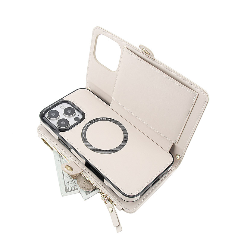 Casebus Classic Crossbody Wallet Phone Case, Premium Leather, Credit Card Holder, Zipper Pocket Purse Handbag, Kickstand Shockproof Case