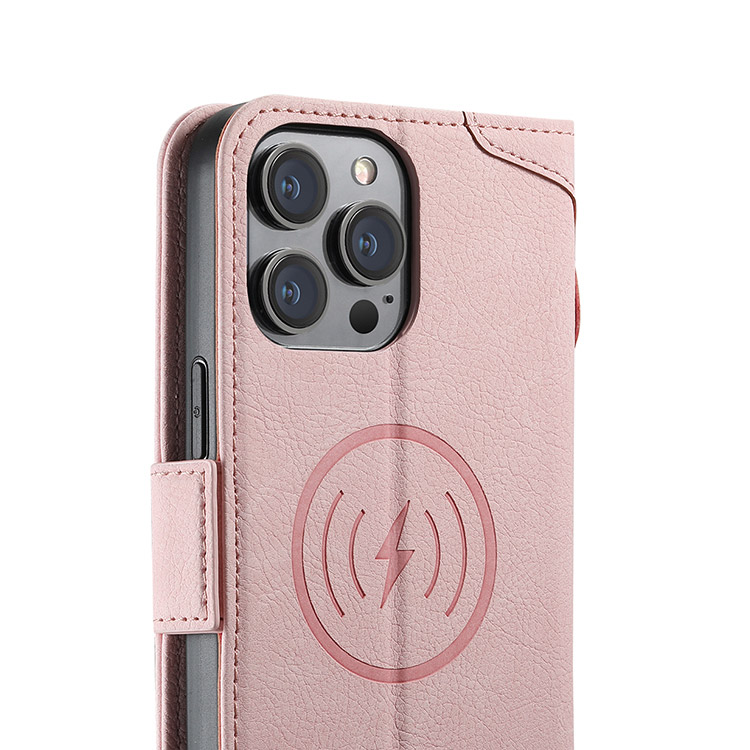 My pink iPhone 15 case is perfect! Holds license and credit card and some cash. Has the charging ring on the back. Very well made.