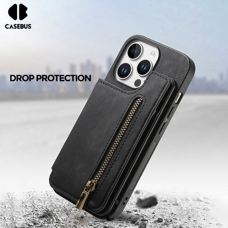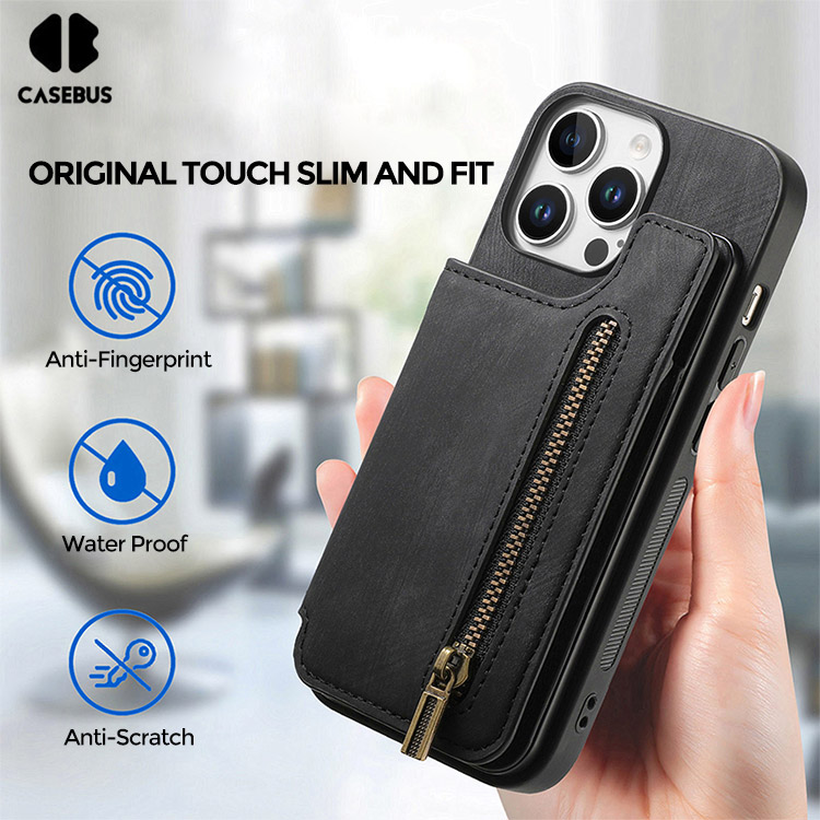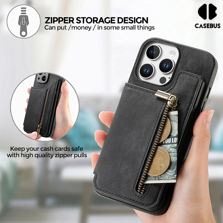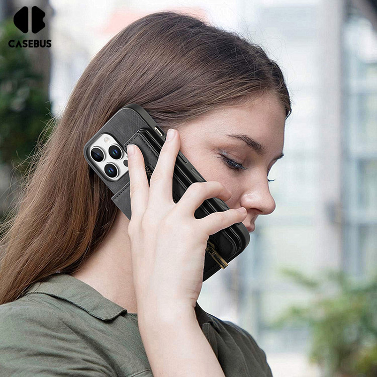 Casebus Classic Crossbody Wallet Phone Case, Premium Leather, Credit Card Holder, Zipper Pocket Purse Handbag, Kickstand Shockproof Case