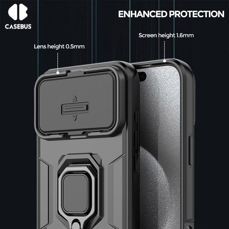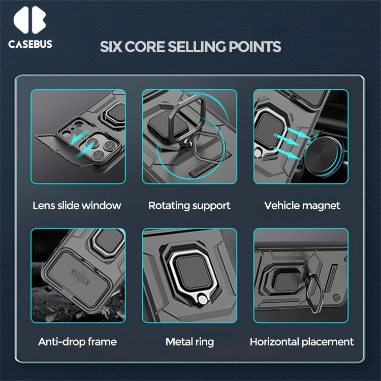 Casebus Slide Camera Cover Phone Case, with Armor, Heavy Duty Shockproof Kickstand Magnetic Car Mount Holder