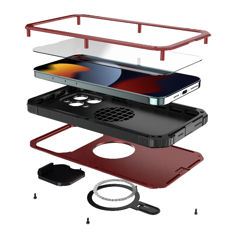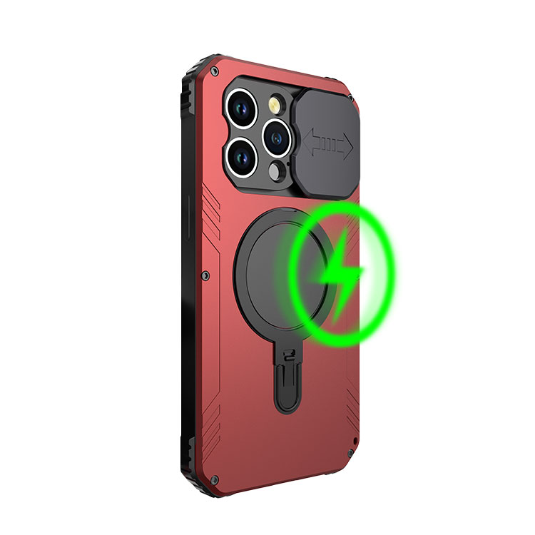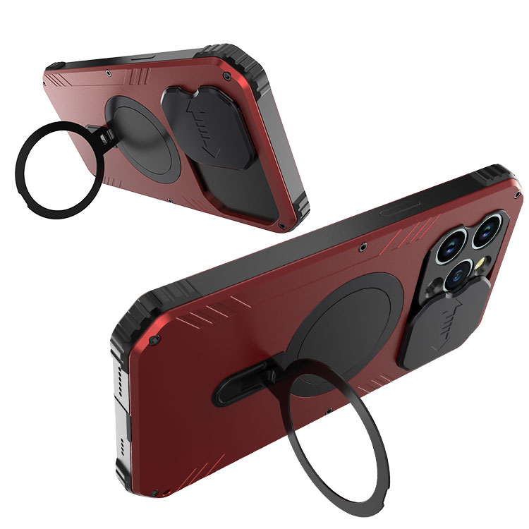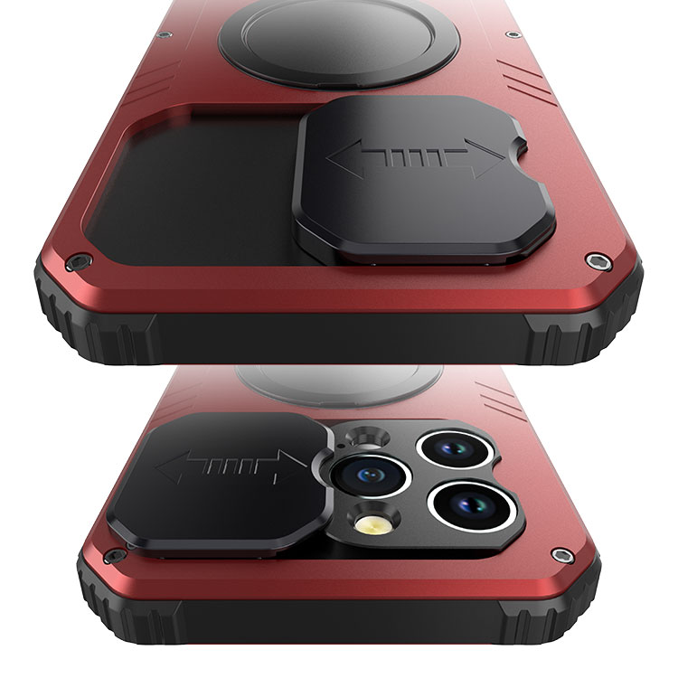[Kickstand Design] This case built-in kickstand provides 2 hand-free viewing anlges, portrait and landscape viewing, can bring you a convenient viewing experience. It can help to your phone apply to a variety of life and work scenarios.  Note: You will get the Metal phone case, spare screws, screw driver. **Note** On this phone case only the iPhone 15 series has the magnetic function support Magsafe.