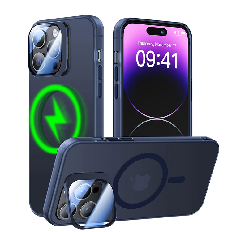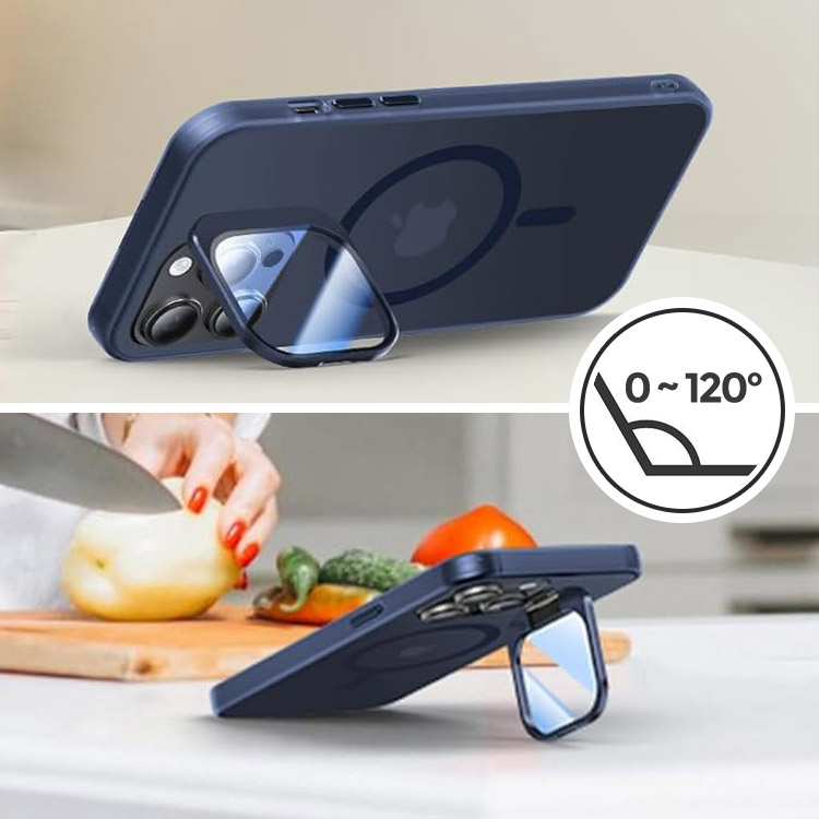 KADER Casebus Slim Phone Case Compatible with Magsafe, Metal Camera Stand Built in 9H Camera Lens Protector, Translucent Matte Shockproof Cover