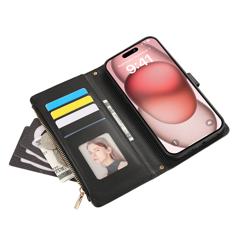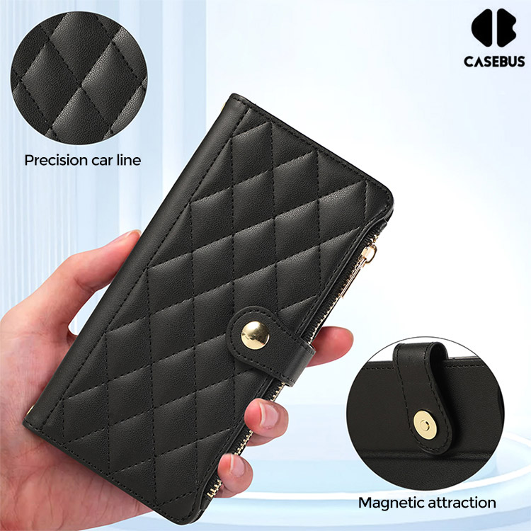 DIANA Casebus Fashion Wallet Phone Case, Magnetic Flip Zipper Leather Cover, with Credit Card Slots & Shoulder Strap & Wrist Strap