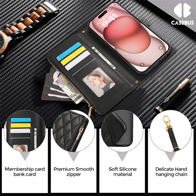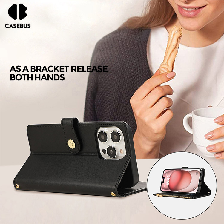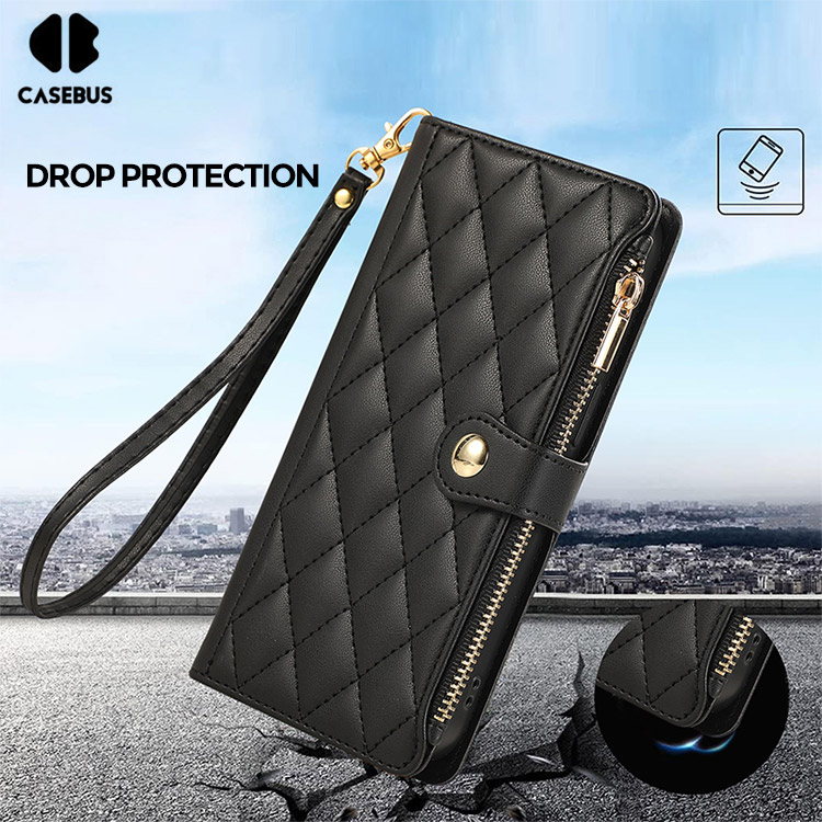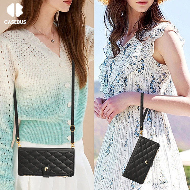 Casebus Classic Crossbody Wallet Phone Case, Premium Leather, Credit Card Holder, Zipper Pocket Purse Handbag, Kickstand Shockproof Case
