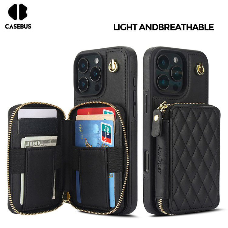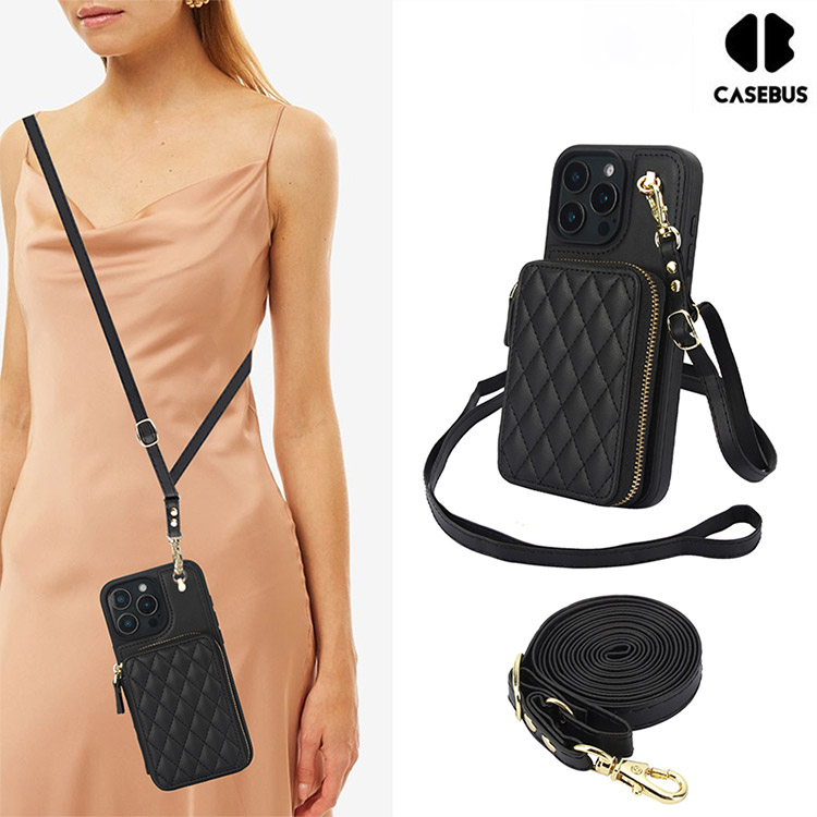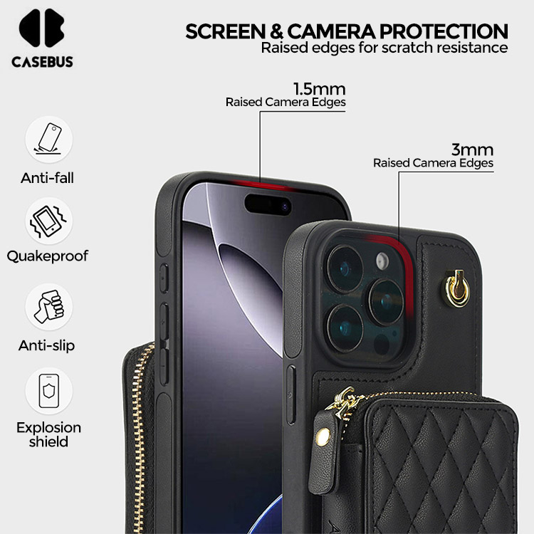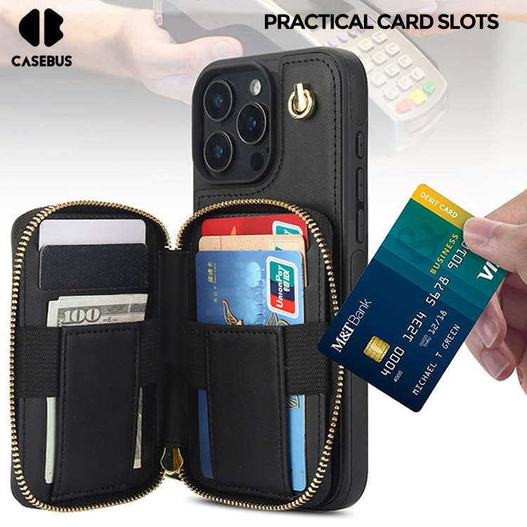 Casebus Classic Crossbody Wallet Phone Case, Premium Leather, Credit Card Holder, Zipper Pocket Purse Handbag, Kickstand Shockproof Case