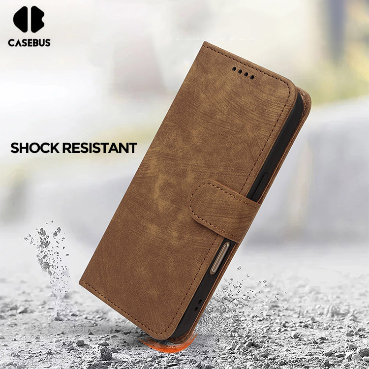 XANTHE Casebus Classic Wallet Phone Case, Leather Flip Purse, with Card Slot Holder & Wrist Band, Shockproof Protective Cover