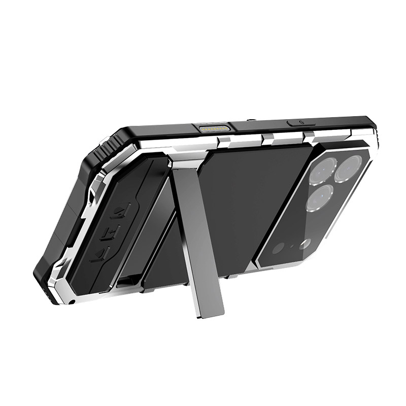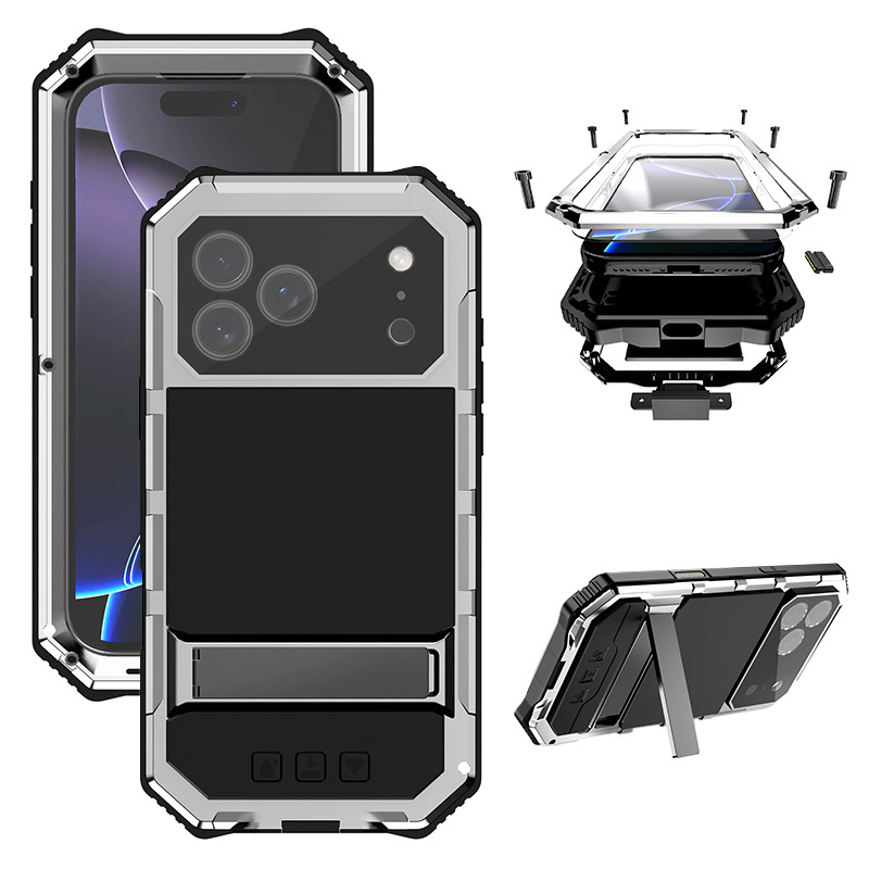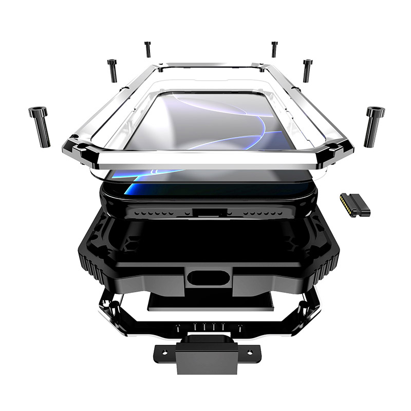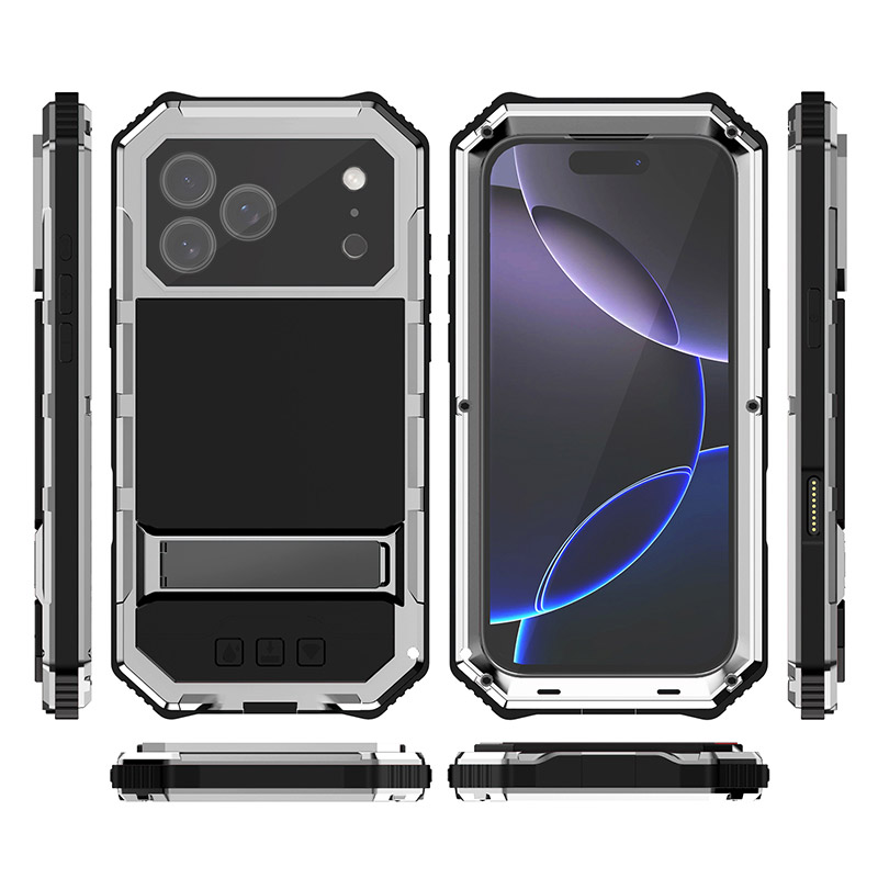 [Protección de grado militar] Esta funda metálica de alta resistencia cuenta con una estructura de protección de triple capa, una capa interior de silicona flexible que absorbe los golpes, marcos metálicos de aleación de aluminio reforzados en la parte delantera y trasera, y un protector de pantalla integrado de alta resistencia con un soporte ajustable. El exclusivo diseño de una sola pieza conserva el tacto metálico a la vez que proporciona una protección integral contra los impactos.