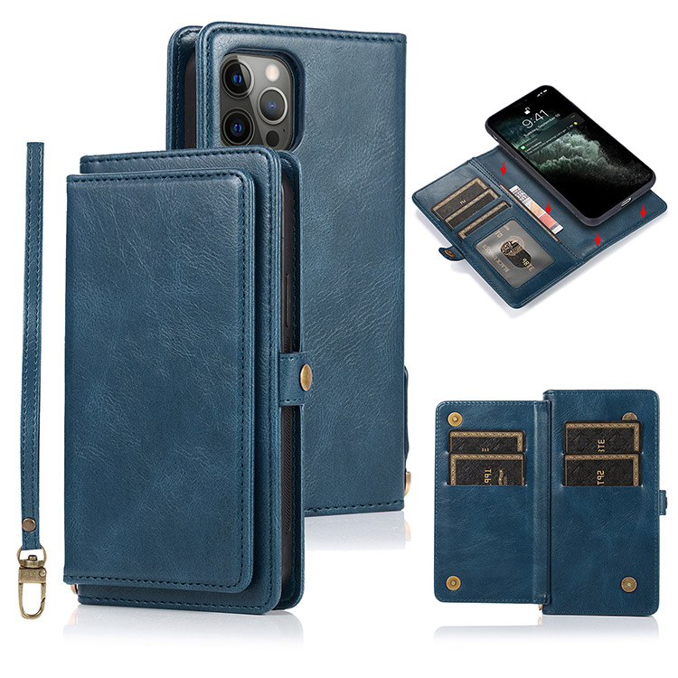 Casebus Classic Detachable Magnetic Wallet Phone Case, 11 Card Slots, 2 in 1, Leather Zipper, Folio Flip, Money Pocket Clutch Case