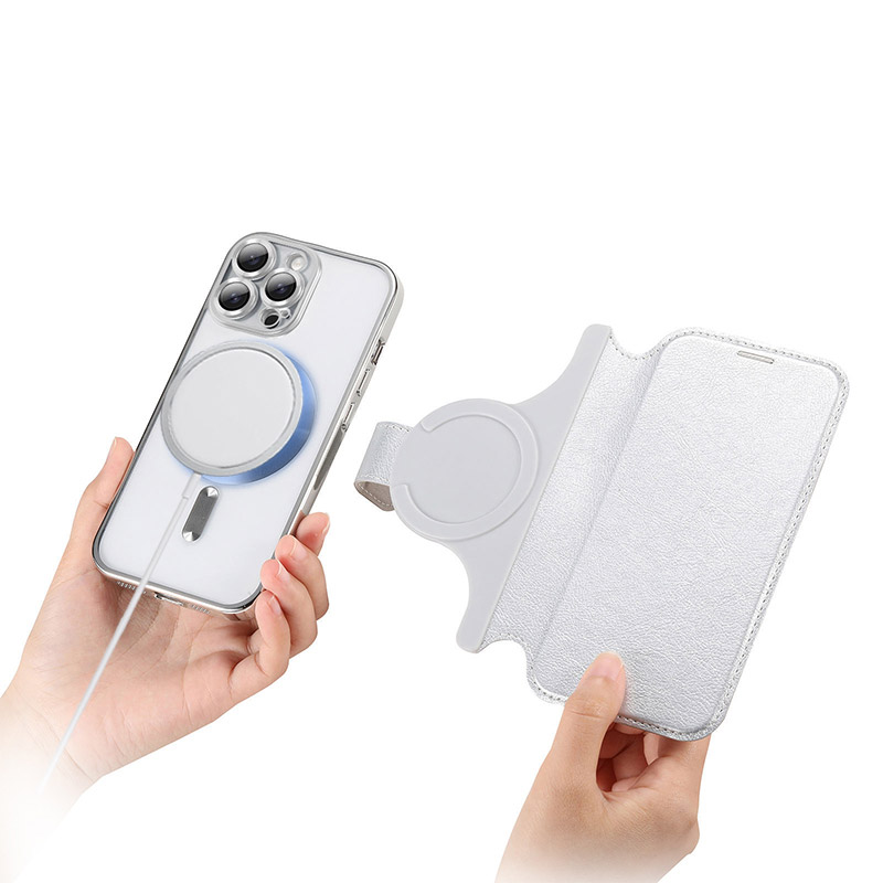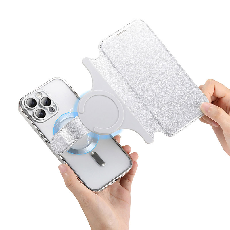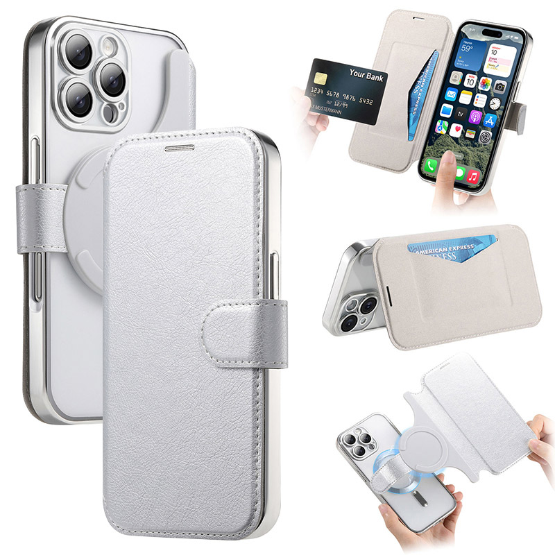 [Detachable 2 in 1 Design] Including one electroplate basic case built-in metallic ring (compatible with magSafe accessories) and one flip cover with card holder, These 2 Parts can be installed together by the magnetic function; Works great with a power bank, magnetic car mount, wireless charger, or phone ring holder.