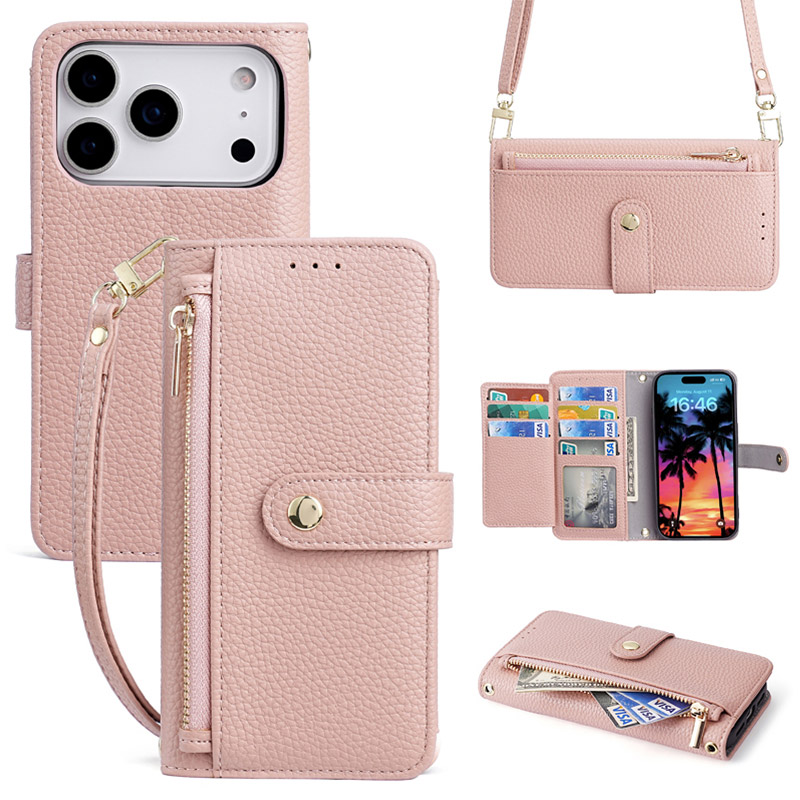 Casebus Classic Crossbody Wallet Phone Case, Premium Leather, Credit Card Holder, Zipper Pocket Purse Handbag, Kickstand Shockproof Case
