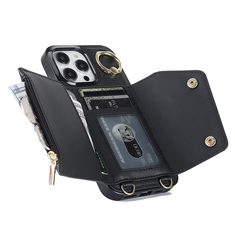 GINNA Casebus Crossbody Wallet Phone Case, Ring Holder, Lanyard and Wristlet Strap, Card Slots, Zipper Pocket, Double Snap Shockproof Cover