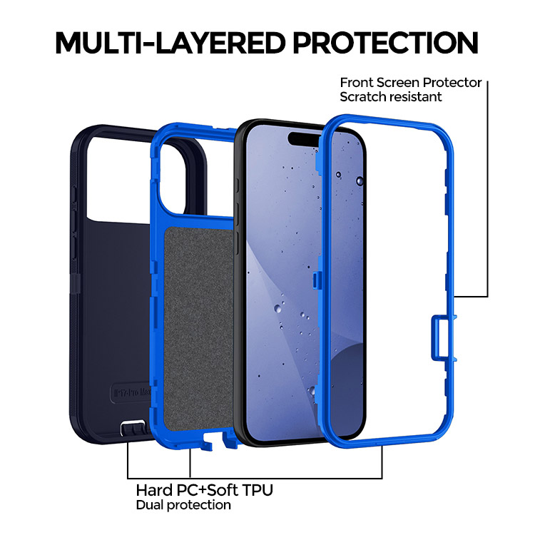 [Multi-Layer Design] This case Unique detachable triple-layer defense design, hybrid hard PC inner and high-grade rubber outer construction absorbs shock and drop, plus raised bezels edge keeps your touchscreen safe.