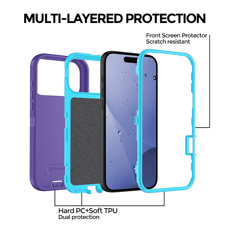 [Multi-Layer Design] This case Unique detachable triple-layer defense design, hybrid hard PC inner and high-grade rubber outer construction absorbs shock and drop, plus raised bezels edge keeps your touchscreen safe.