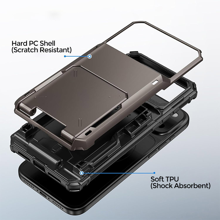 Casebus Classic Phone Case, with Credit Card Holder, Sliding Slot Heavy Duty Protection Dual Layer Armor Shell Cover