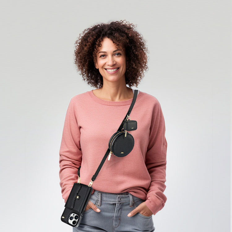 [Round Bag]This Casebus classic lychee round pouch support match with the Casebus crossbody Phone case Or Strap.