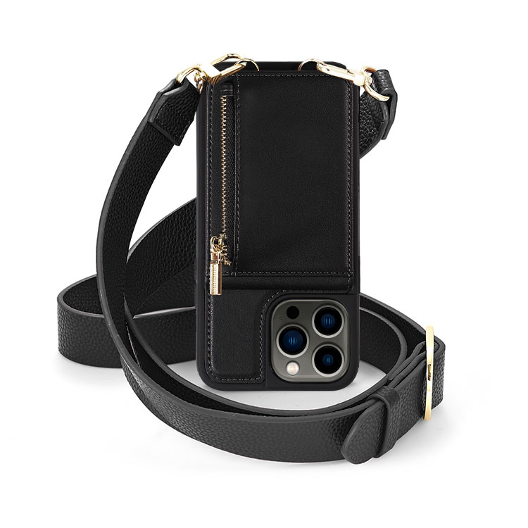I bought the black cross body for my new iPhone 14 Plus. The strap extends long enough to carry my phone in my coat pocket. I carry a card, ID and a 20 in the attached wallet, which is all I need on a daily basis. I get lots of interest and compliments.