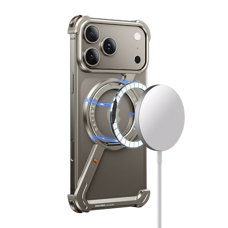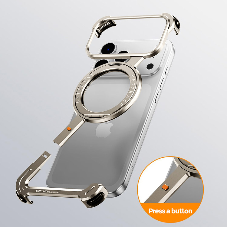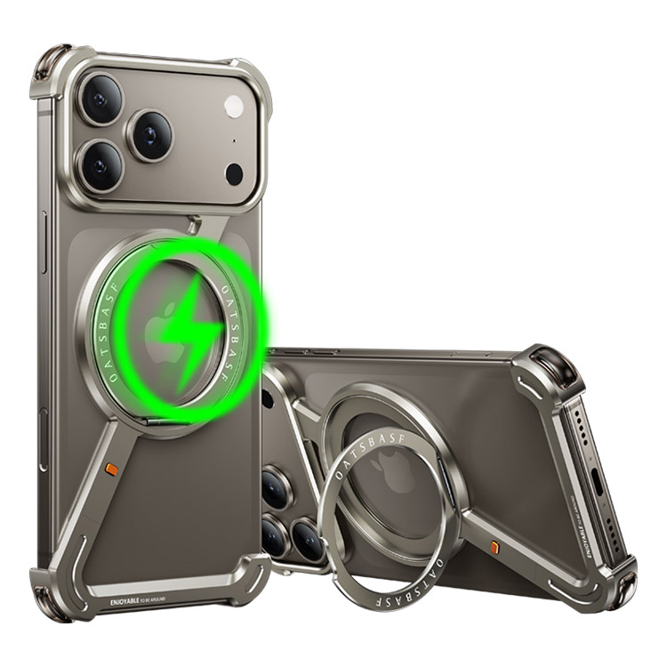 FRANK Casebus Heavy Duty Metal Phone Case, Z Shaped Frameless Design, Support MagSafe, with 360 Rotation Kickstand, Shockproof