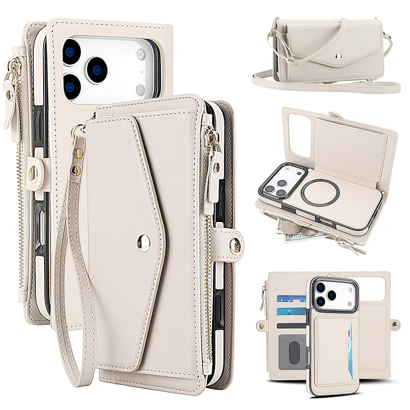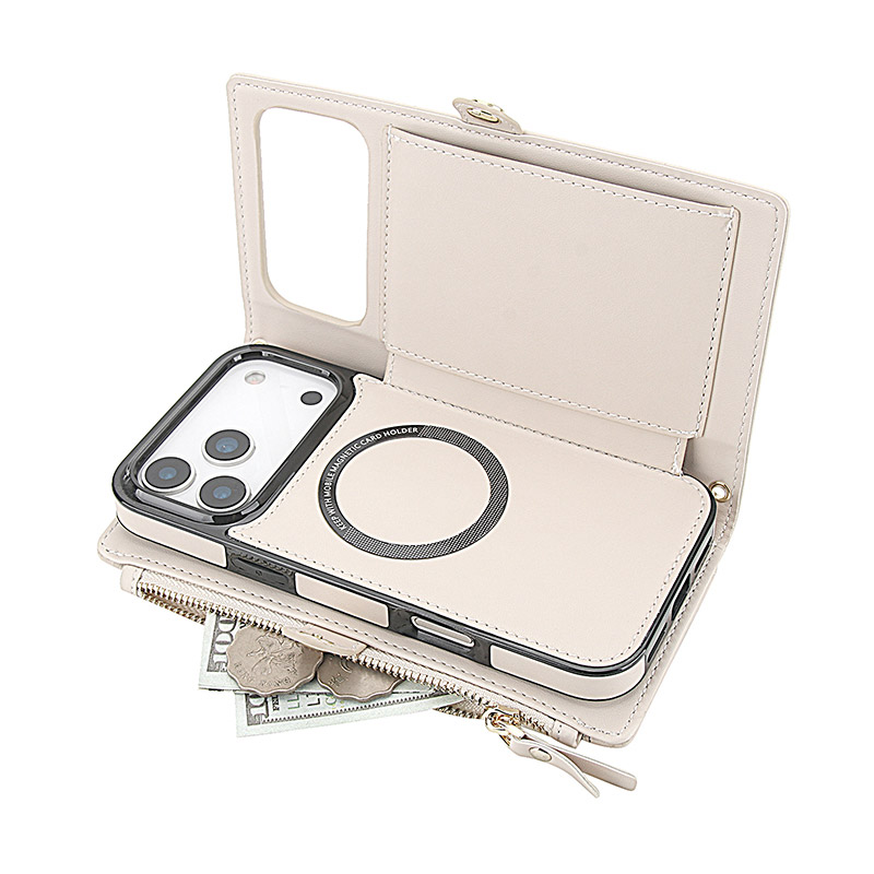 Casebus Classic Crossbody Wallet Phone Case, Premium Leather, Credit Card Holder, Zipper Pocket Purse Handbag, Kickstand Shockproof Case