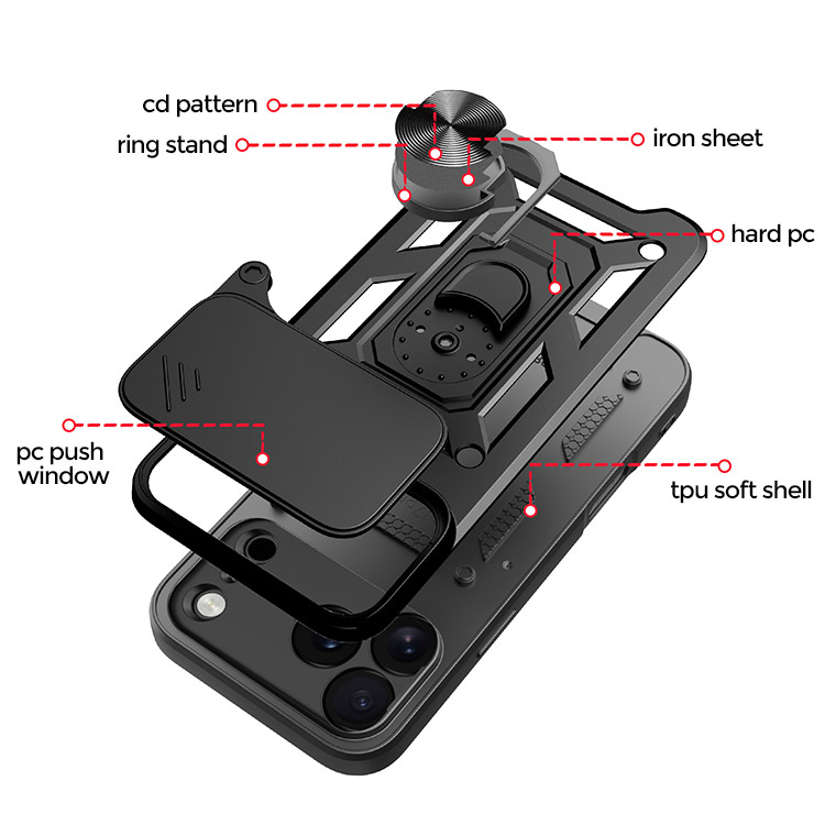 CARRICK Casebus Slide Camera Cover Phone Case, with Armor, Heavy Duty Shockproof Kickstand Magnetic Car Mount Holder