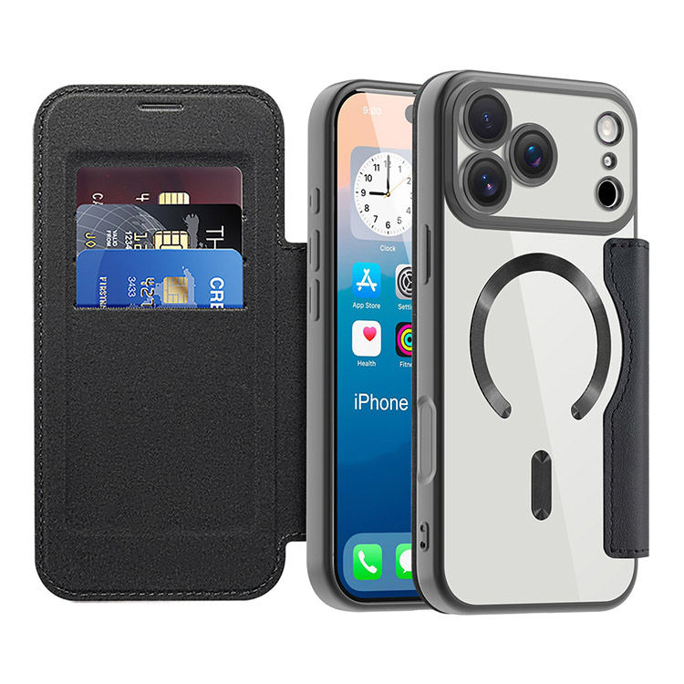 AWSTIN Casebus Wallet Phone Case Compatible with MagSafe, Built in Camera Lens Protector, Flip Folio, Card Holder, Shockproof, Support Wireless Charging, Leather & Transparent Cover
