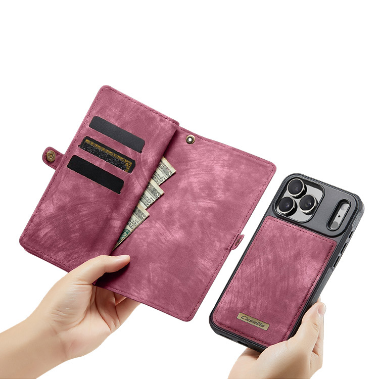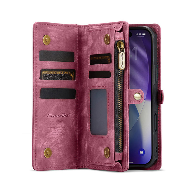 DONTAYE Casebus Classic Detachable Magnetic Wallet Phone Case, 11 Card Slots, 2 in 1, Leather Zipper, Folio Flip, Money Pocket Clutch Case