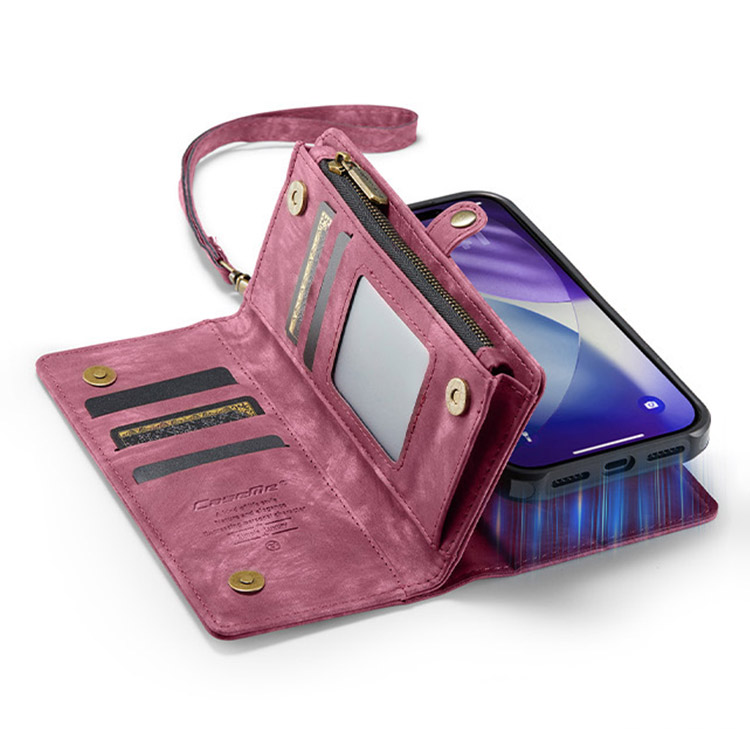 Casebus Multi Functional Wallet Phone Case, 14 Card Slots 3 Purse 1 Zipper 1 Wrist Band 1 Metal Buckle, Wrist Strap Clutch Magnetic Detachable
