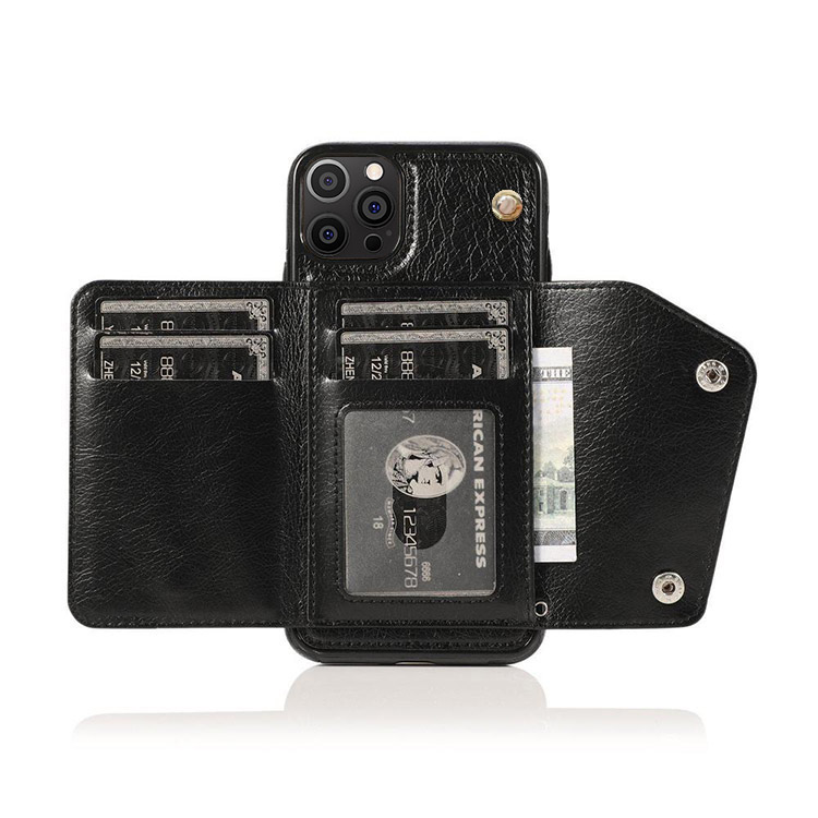 The wallet case features a super convenient backing to hold several cards, cash, and more. The two-snap buttons will keep the wallet securely closed and protect your essentials.