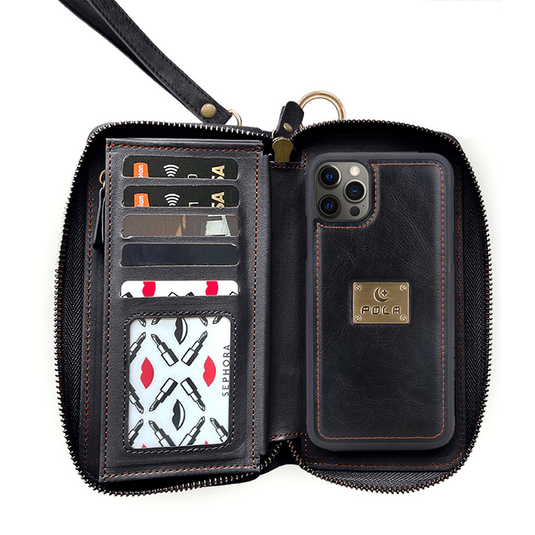 Casebus Classic Detachable Magnetic Wallet Phone Case, 11 Card Slots, 2 in 1, Leather Zipper, Folio Flip, Money Pocket Clutch Case
