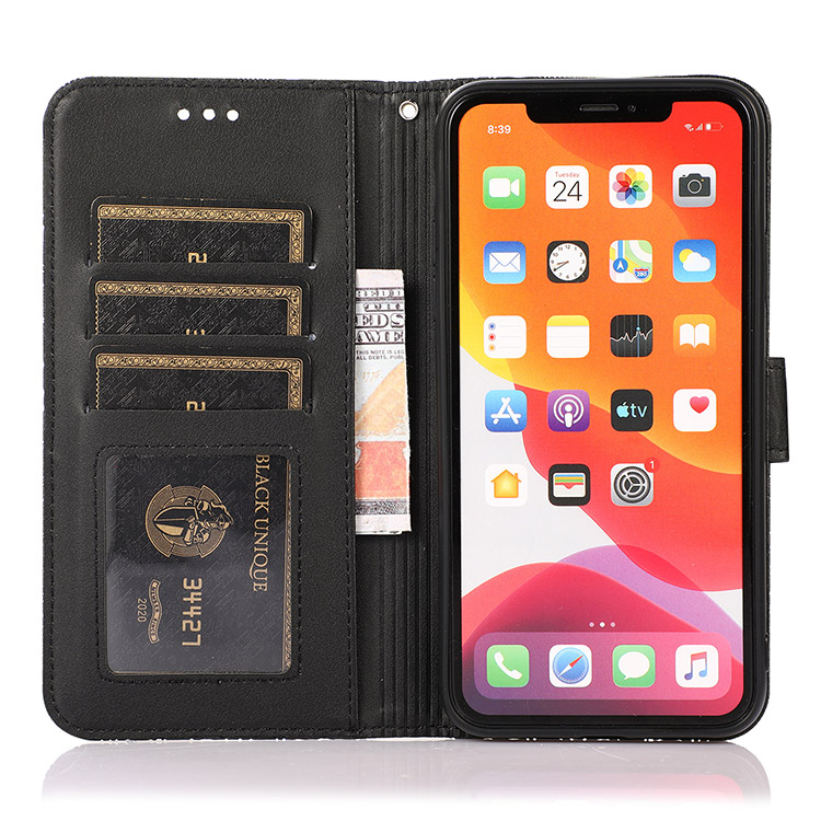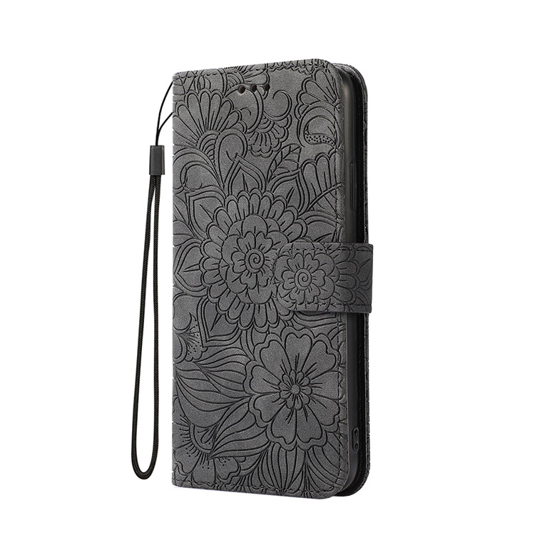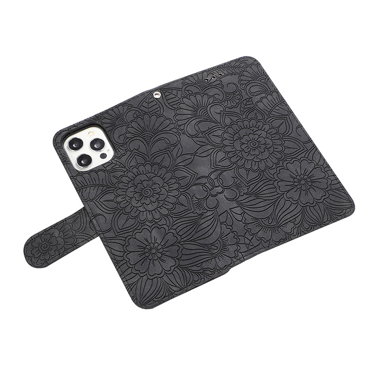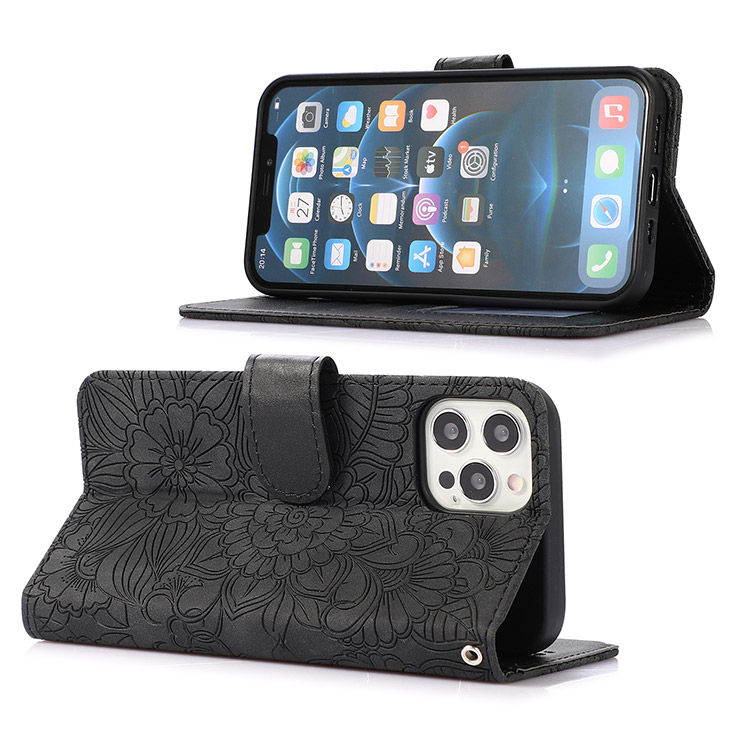 PENVRO Casebus Embossed Flower Flip Wallet Phone Case, with 3 Card Slots plus 1 Cash Pocket Lanyard Soft Leather Kickstand Protective Case