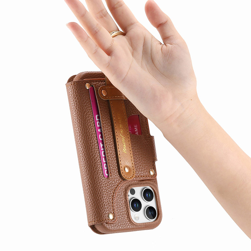 Casebus Étui pour téléphone portable, avec sangle amovible, fermeture magnétique, porte-cartes de crédit, étui en cuir à roulettes, résistant aux chocs