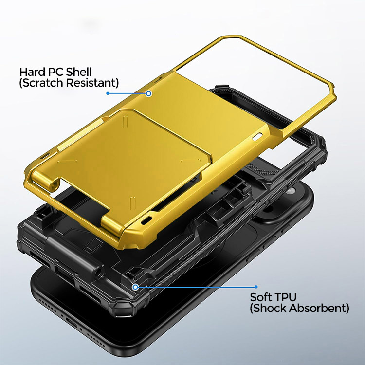 Casebus Classic Phone Case, with Credit Card Holder, Sliding Slot Heavy Duty Protection Dual Layer Armor Shell Cover