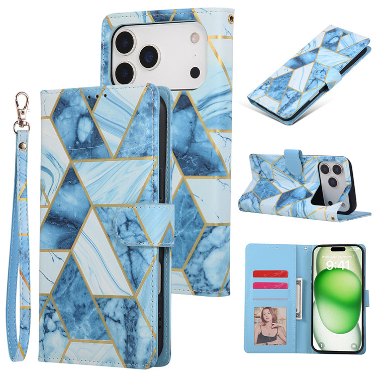 AUHERT Casebus Classic Marble Wallet Phone Case, Premium Leather, Credit Card Holder, Magnetic Closure, Wrist Strap, Kickstand Shockproof Case