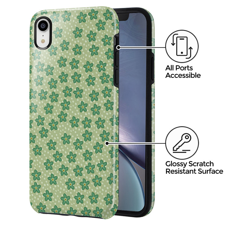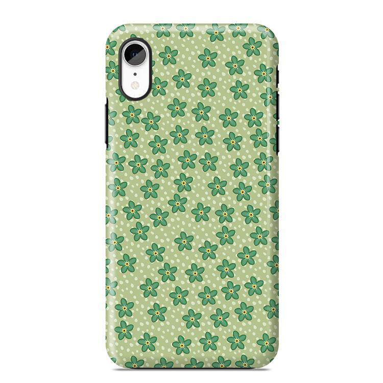 As beautiful as summery-dress and as green as the flowery meadows, the Daydream phone case is an absolute must-have for those romantic summer days and strolls around the city! Tiny green flowers meet with a playful dotted pattern fitting into the Y2K craze and create the cutest protective phone case!